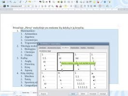 Tekstų rengyklė – dviejų lygių ženklintas ir numeruotas sąrašas